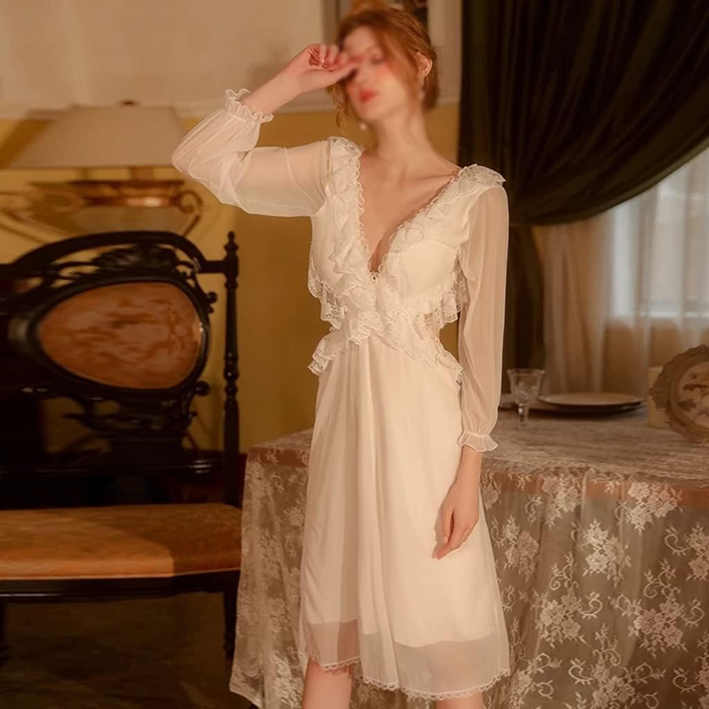 N/A Women's Pajamas Underwear Lace Pajamas Long-Sleeved Pajamas Pajamas Loungewear Pajamas Home Pajamas (Color : A, Size : M Code)